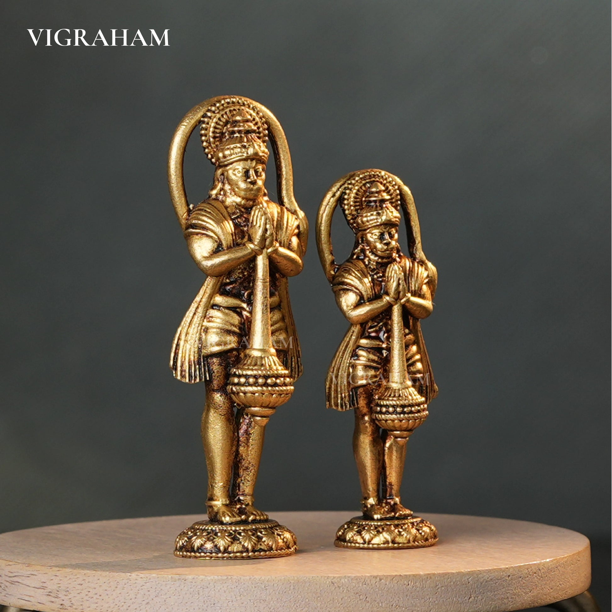Brass Hanuman Idol Set (8 cm & 6 cm)