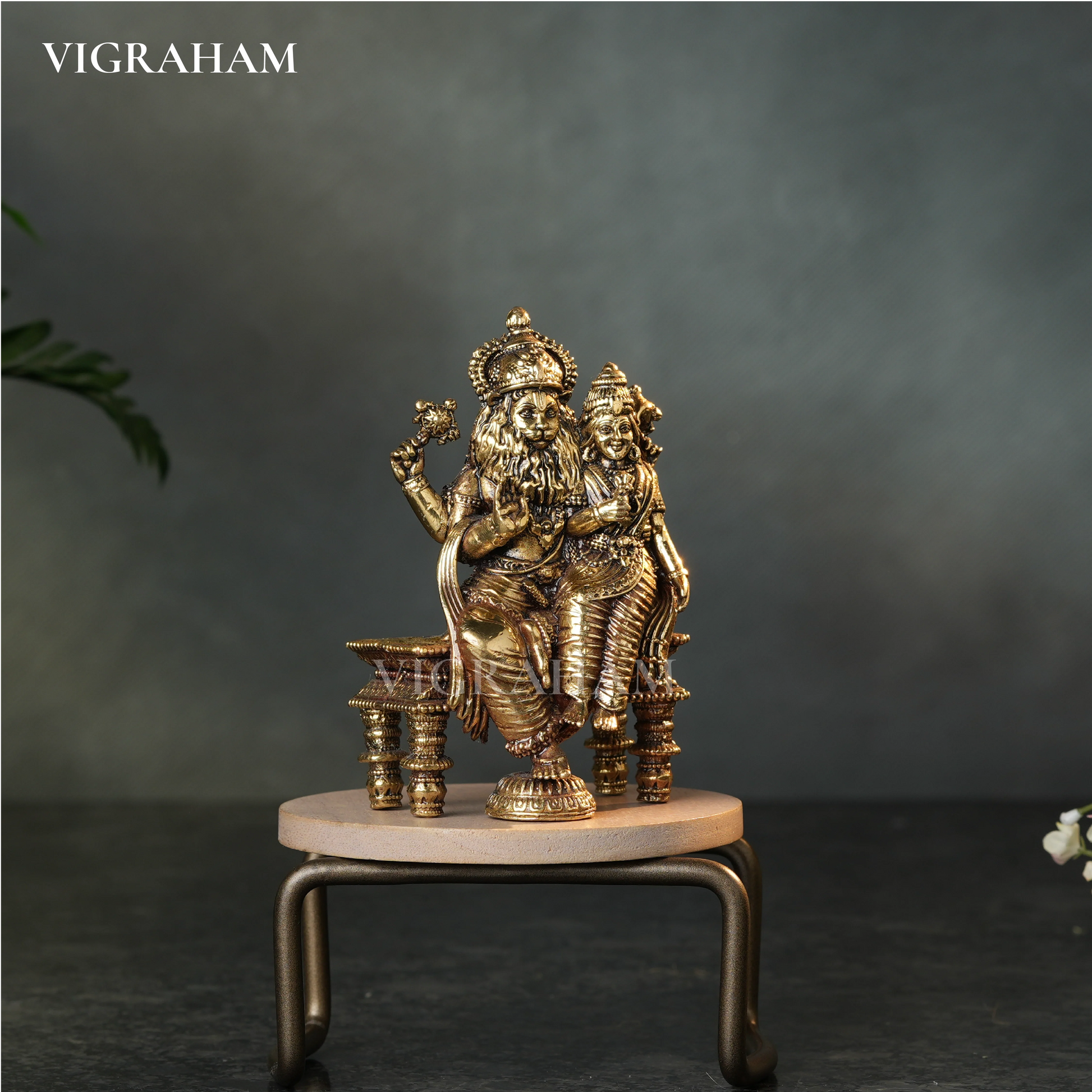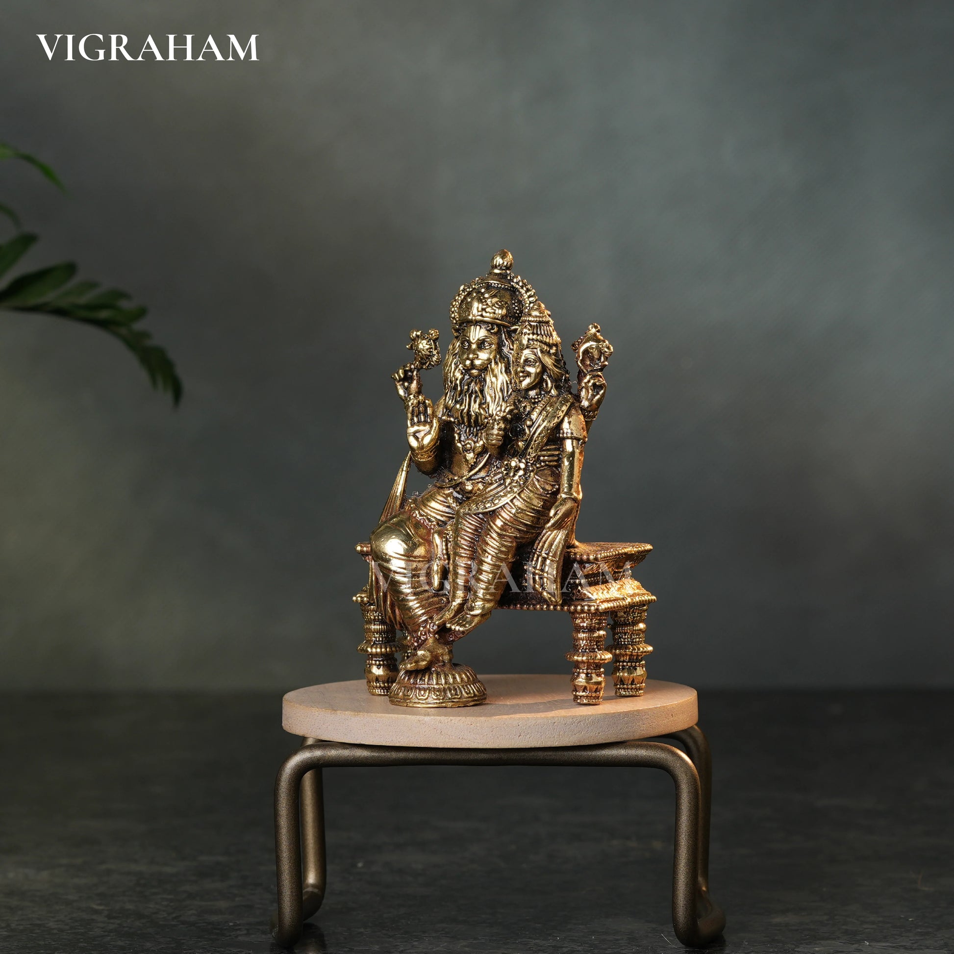 Bring home the powerful and compassionate blessings of Lakshmi Narasimha, the sacred iconographical depiction of Lord Narasimha, the fourth avatar of Vishnu, with his consort, Goddess Lakshmi.