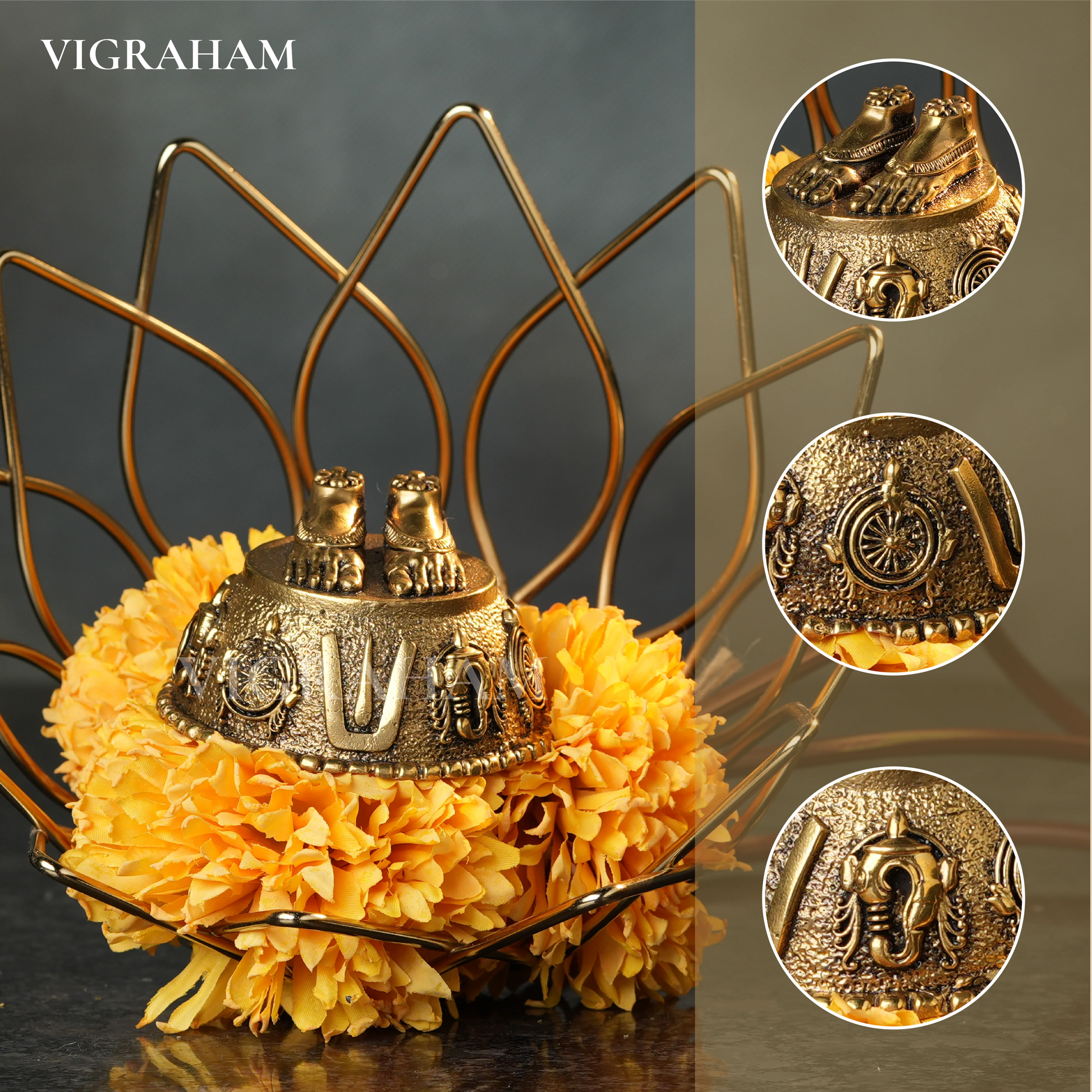 Bring divine energy and protection into your space with this beautifully handcrafted Brass Sangu Chakram Namam. Featuring Lord Vishnu’s sacred symbols — the conch (Sangu) and discus (Chakram) — it embodies purity, strength, and spiritual harmony. Crafted with intricate detailing and an antique brass finish, this piece is ideal for your pooja room, temple décor, or as a meaningful devotional gift.