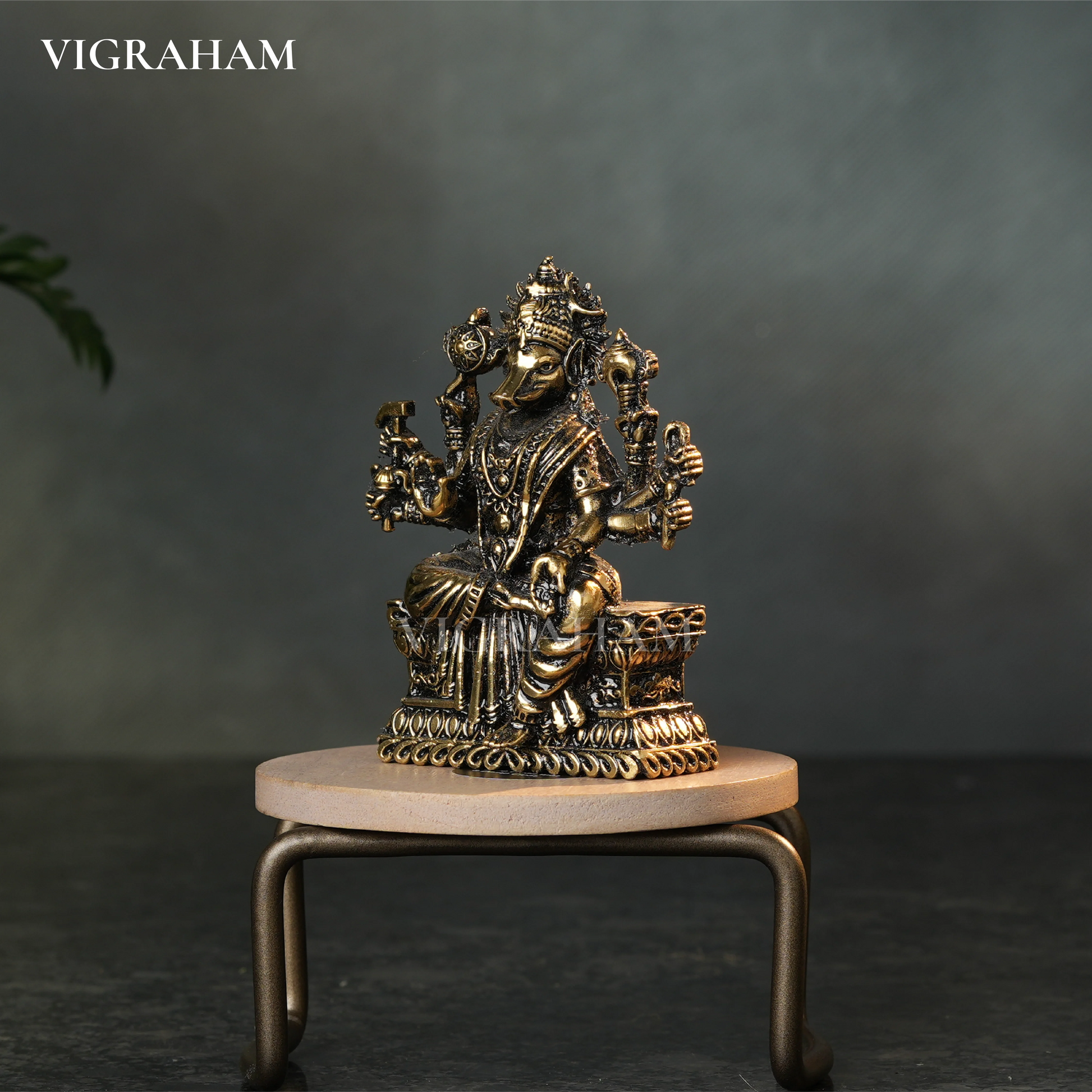 Bring home the divine energy of Goddess Varahi with this finely crafted 4-inch brass idol. Symbolizing protection, courage, and prosperity, this statue captures the goddess in her powerful seated form with intricate detailing. Measuring 10 cm in height and 7 cm in width, and weighing 0.250 kg, it’s perfect for your pooja space, altar, or as a thoughtful spiritual gift. Handcrafted to reflect traditional artistry, this piece adds grace and sacredness to any setting.